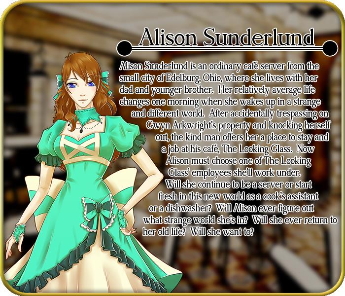 Alison (default name) Sunderlund considers herself to be an average girl from a small Ohio town. By day she can be found working as a server in a local café and by night she takes care of her house and family: her dad and younger brother. Though she doesn’t have a lot on her plate, the life she has gives her very little free time. But Alison’s life changes one night when she decides to play a game before falling asleep, and wakes up the next morning sitting under a tree in a strange new world.
