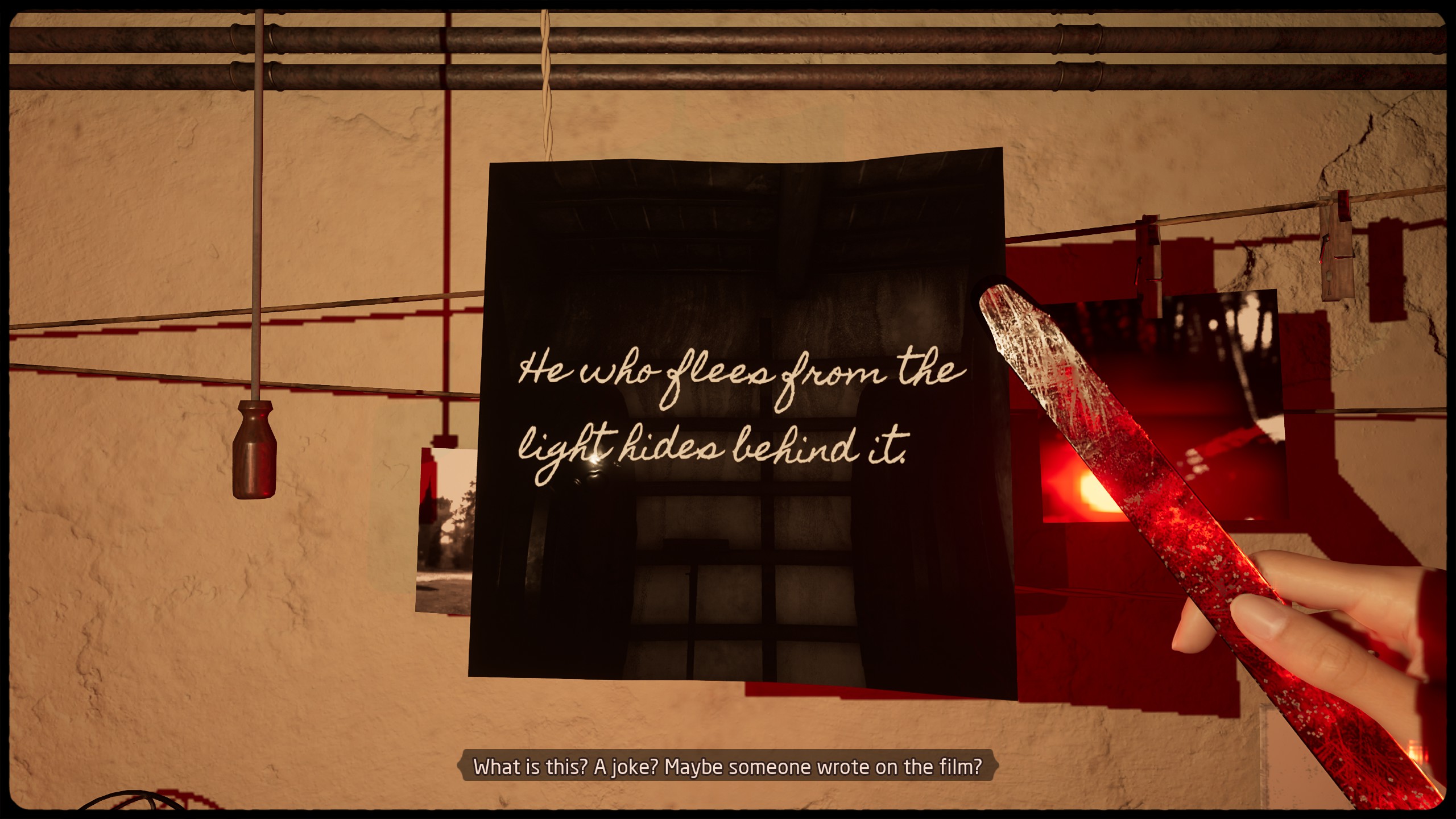 The gameplay is for the most part what you would expect from a game of this nature. You will wander around the area in first person picking up items to solve simple quests. This isn’t a bad thing, since the story being told is an interesting one and they do throw a lot of interactive prompts in the mix while you are performing these actions – a big portion being the several pictures you need to take during the game in order to progress the story. Taking pictures isn’t as simple as pointing and clicking – there are many additional camera parts you will find as the game progresses and you will have to adjust things accordingly to get the best picture. Players will have to develop this film as well, but the game makes both of these very straight-forward and it’s a lot of fun to take random photos of the environment with all the different filters. Other interactive elements take place during some the darker scenes in the story and add to the disturbing nature of them quite a bit. The little side details like the daily Tarot Card reading are a nice distraction as well, and I loved the artwork on these cards. There are however some things here I felt needed a bit more work. The entire section where you are sending telegraphs is a mess. The chart they provide you on how to decode the messages, makes little sense and if there is an in-game guide that explained it better I didn’t see it. The other major thing I noticed was riding the bike is very difficult due to it controlling poorly. Both of these things are easy fixes that I hope the developers will address going forward.