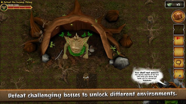Use helpful equipment like whips to swing across rivers, rope ladders to climb up cliffs, or the yummy Tom Yum Gai Soup of Resurrection to bring yourself back to life. You can also upgrade your equipment to take down critters with ease and get through the levels in style.