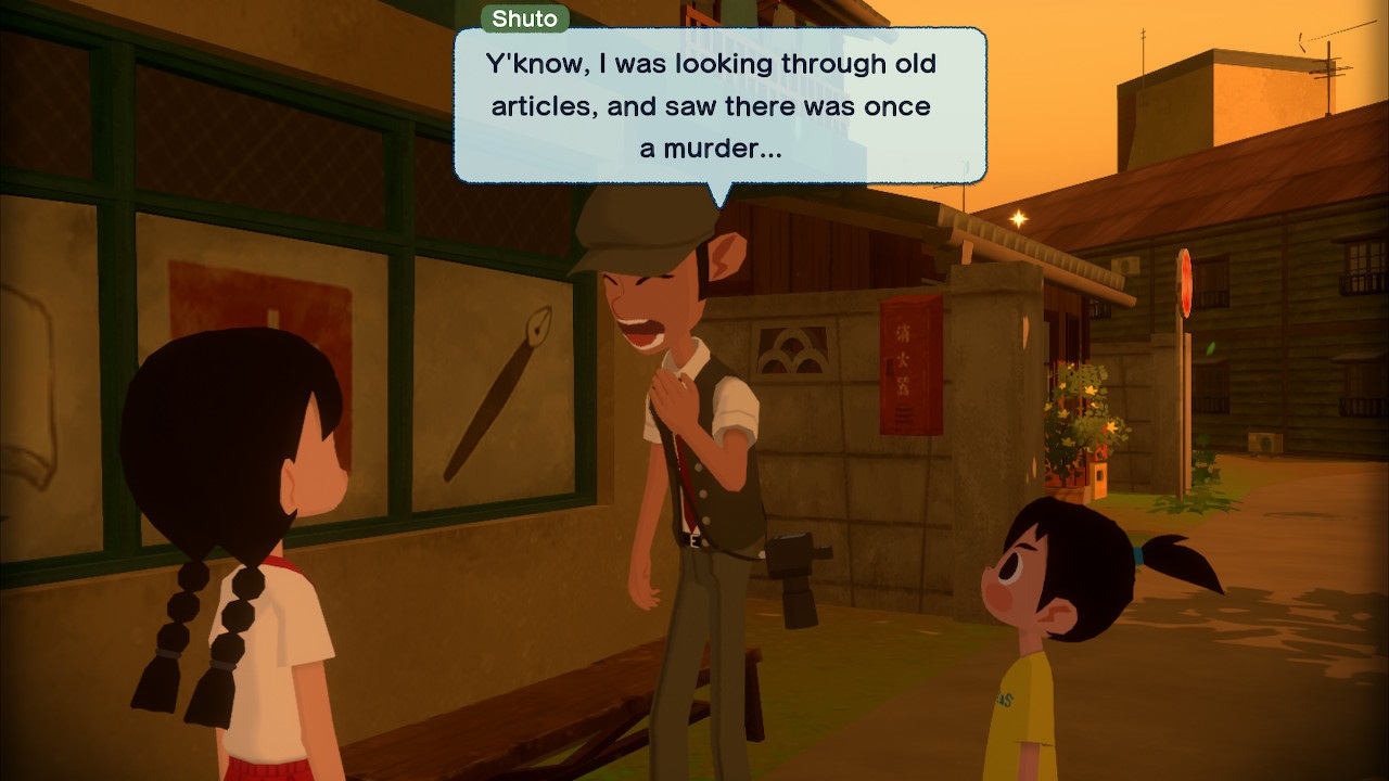 You’re mostly free to explore and discover stuff at whatever pace you like, since you can change the time speed in the game’s settings to a much slower pace, or a quicker one. One of the circus members, Tokotoko, will collect you each night at 5 for dinner, and also you’ll have to go to bed by 10. If you send yourself to bed before you pass out at 10, you can get up early and do the radio exercises at the local shrine. You’ll get a stamp card to fill out each day that you go. Also, between those hours of 5 and 10 at night, you can’t explore the whole map like you can before dinner, only nearby areas closer to the Ashitaba Guesthouse where you’re staying.